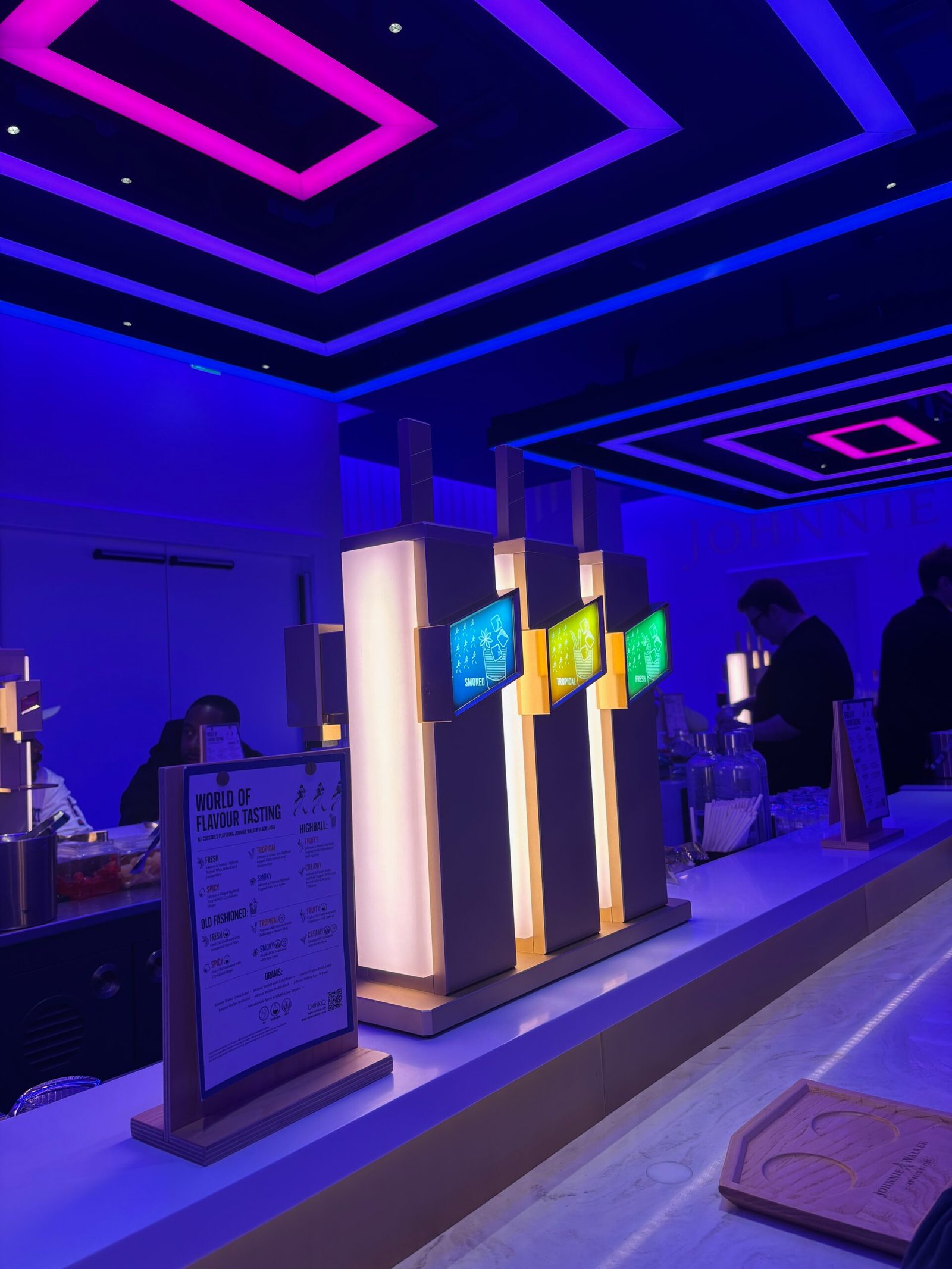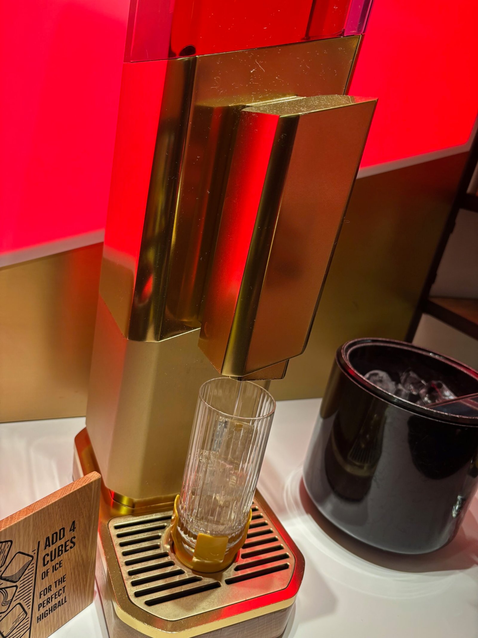 We were treated to a dance performance that taught us all about the history of the company, a tasting room, where we were given a hand-selected whisky highball matched to our own flavour profiles, an interactive film exhibit that took us through the whisky production process and flowed along the walls around us, a video tour of scotland that showed us all the distilleries that make up Johnnie walker and we even had whisky bubbles blown at us. All of that before sitting down in a room complete with an old-fashioned machine, where we got to choose from a menu of drinks and cocktails.